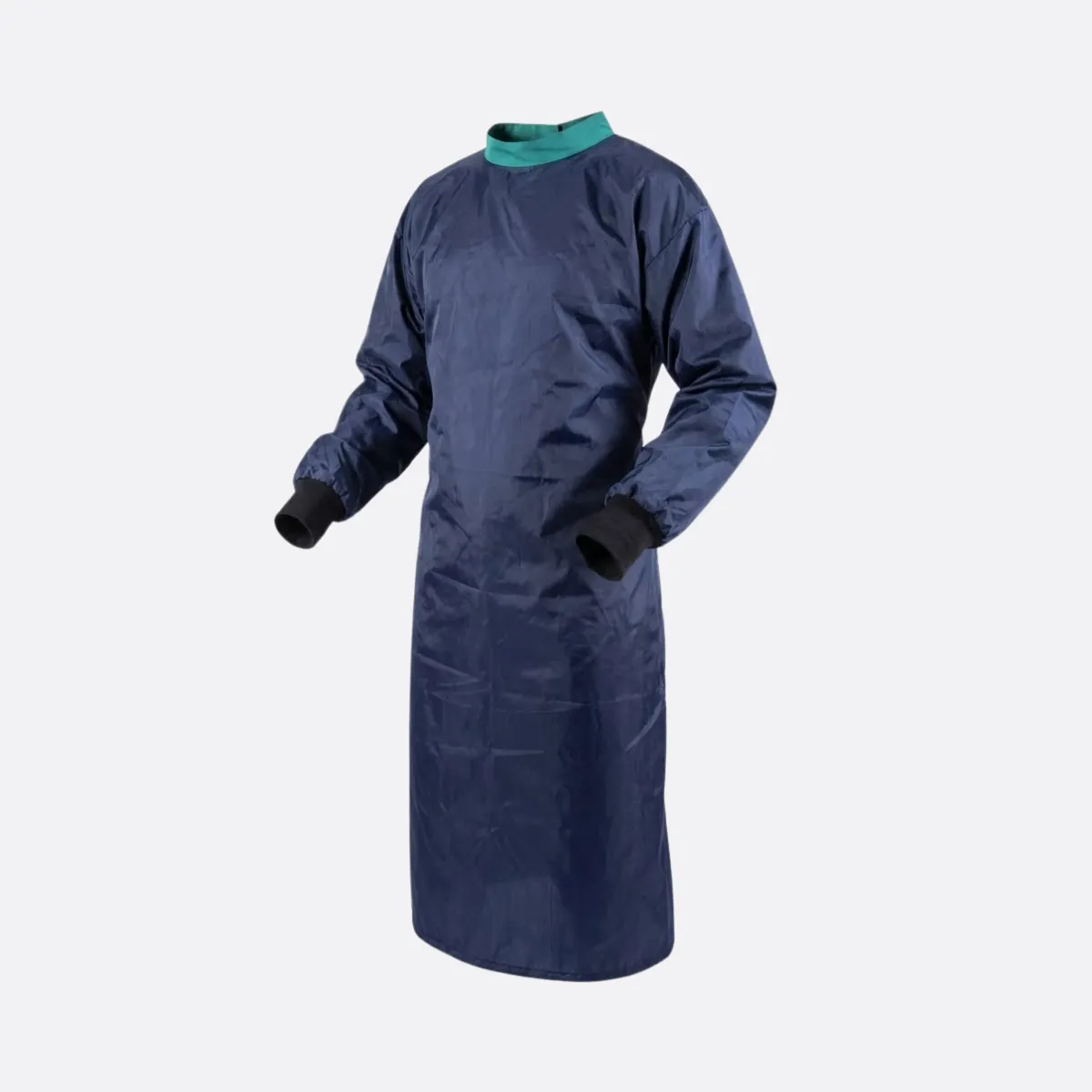 High-protection OT Gown with Mackintosh on Full Body including Sleeves (Green) designed to provide maximum fluid resistance, safety, and comfort for surgeons and OT staff during high-risk surgical procedures.